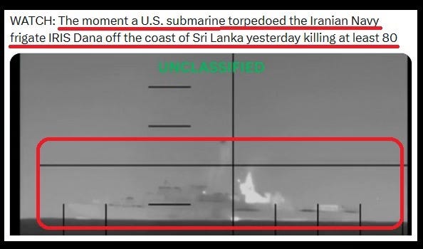 “In the Indian Ocean—an American submarine sunk an Iranian warship that thought it was safe in international waters.,” said Secretary of Defense Peter Hegseth. “Instead, it was sunk by a torpedo—quiet death.”